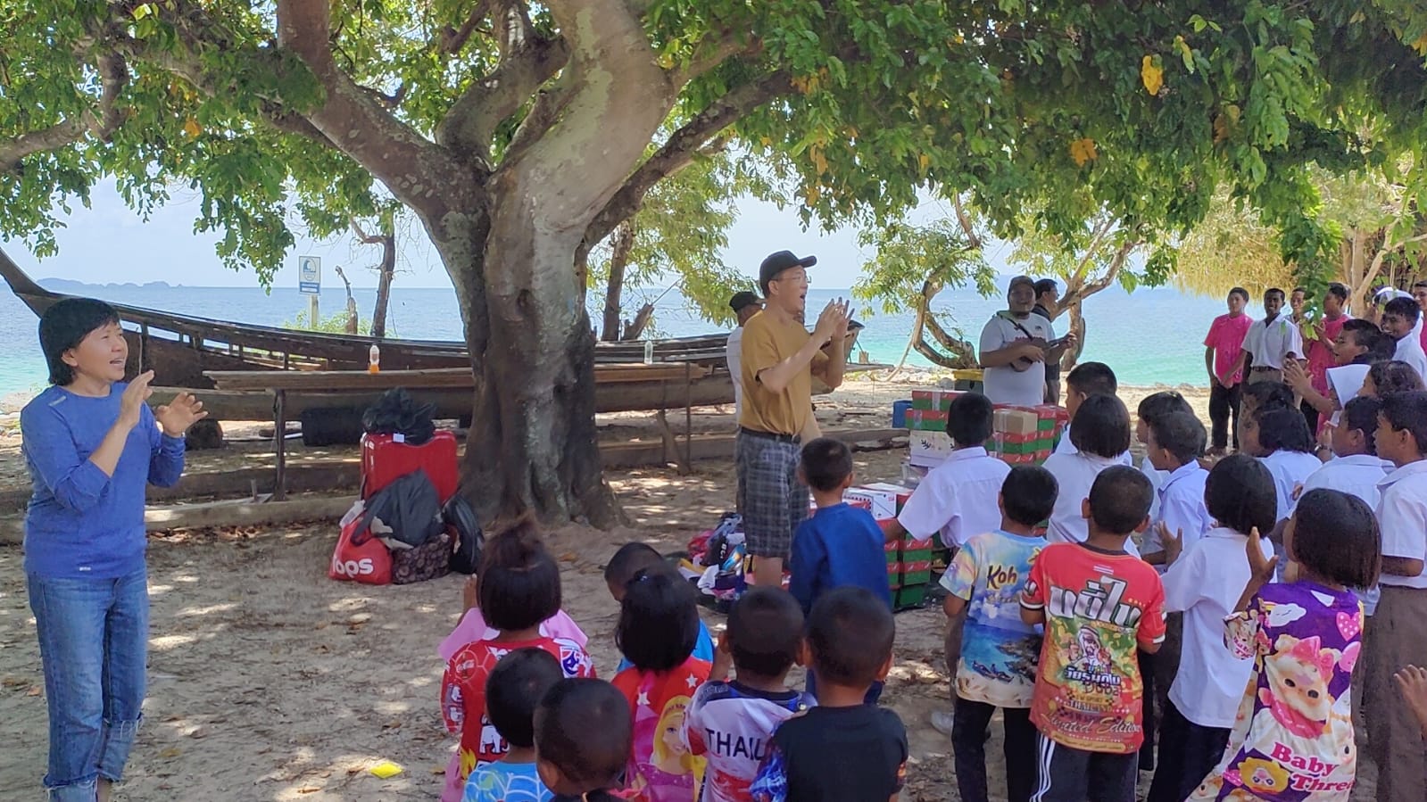 Taking a boat ride to a nearby island. Main activities include interactions with the adults and children through sharing of personal testimonies, playing games and praying for the lost.